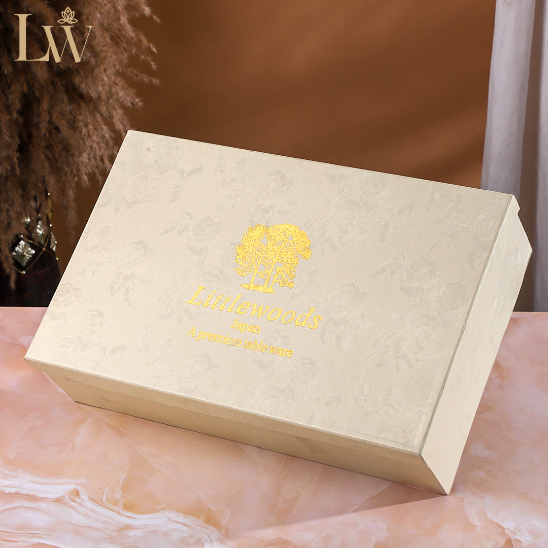 Each set includes 6 finely crafted cups and 6 matching saucers, perfect for serving guests or enjoying your own quiet indulgence. The smooth ceramic finish ensures durability and comfort, while the refined detailing adds a touch of luxury to every sip. Thoughtfully packed in a premium box, this set makes an excellent gift for weddings, anniversaries, or festive occasions.