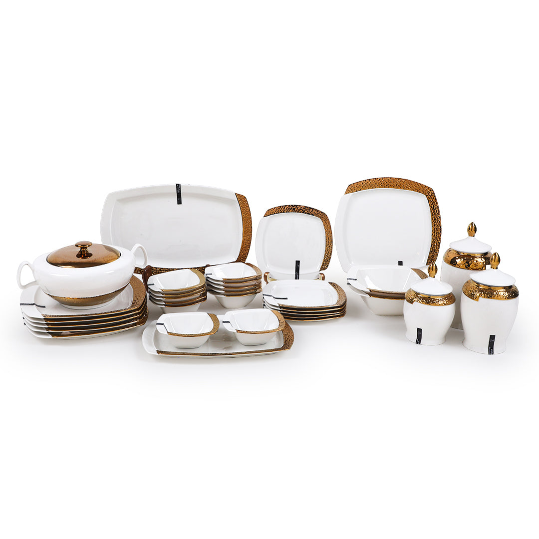 Elevate your dining experience with this exquisite 33-Piece Premium Dinner Set, crafted with fine white ceramic and adorned with elegant golden accents. Perfect for family dinners, festive occasions, or gifting, this set combines timeless design with functionality.