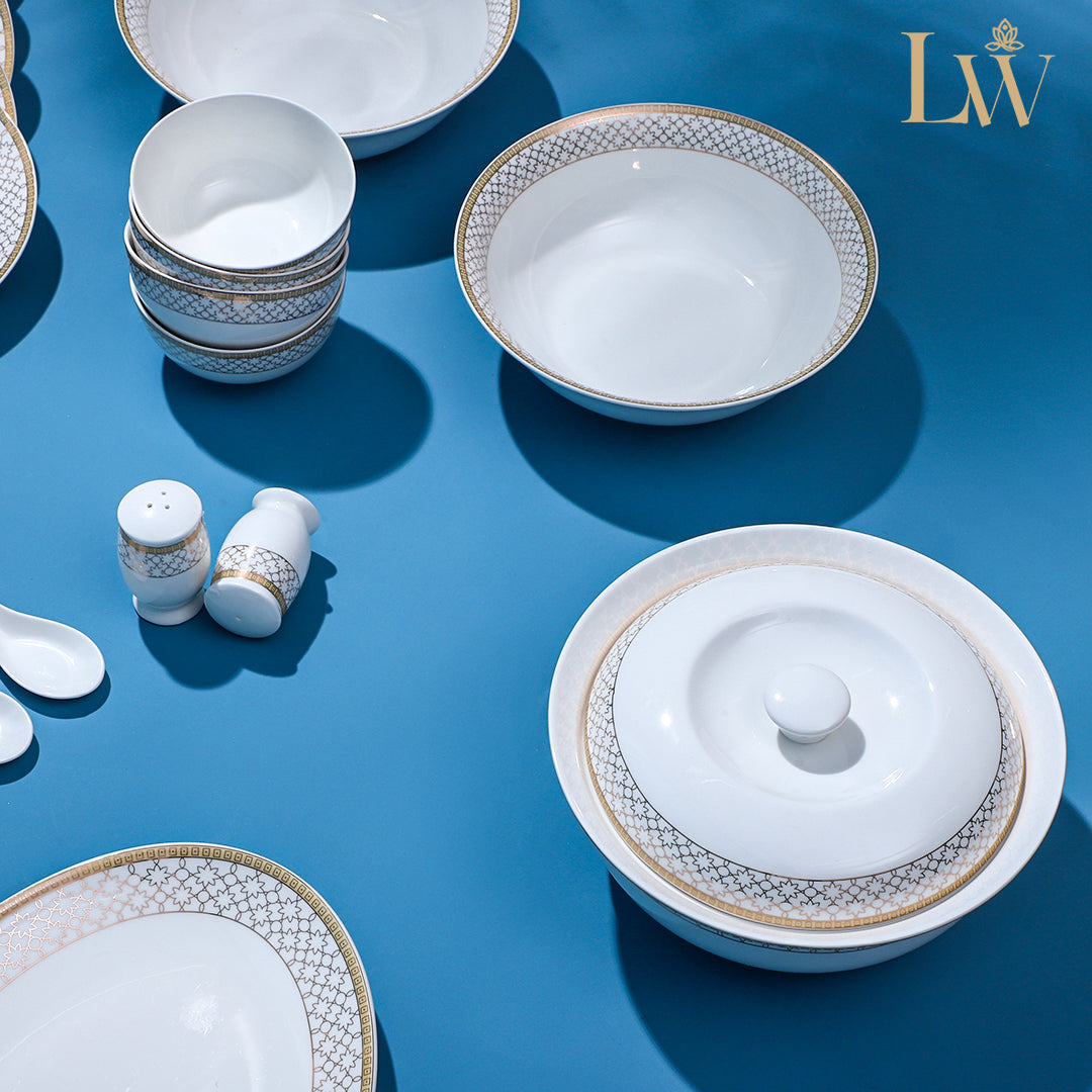 Elevate every dining occasion with Littlewood’s Majestic Gold, a 38-piece dinner set that embodies timeless beauty and refined craftsmanship. Thoughtfully designed to blend elegance with everyday usability, this collection transforms every meal into a moment of grace and togetherness.