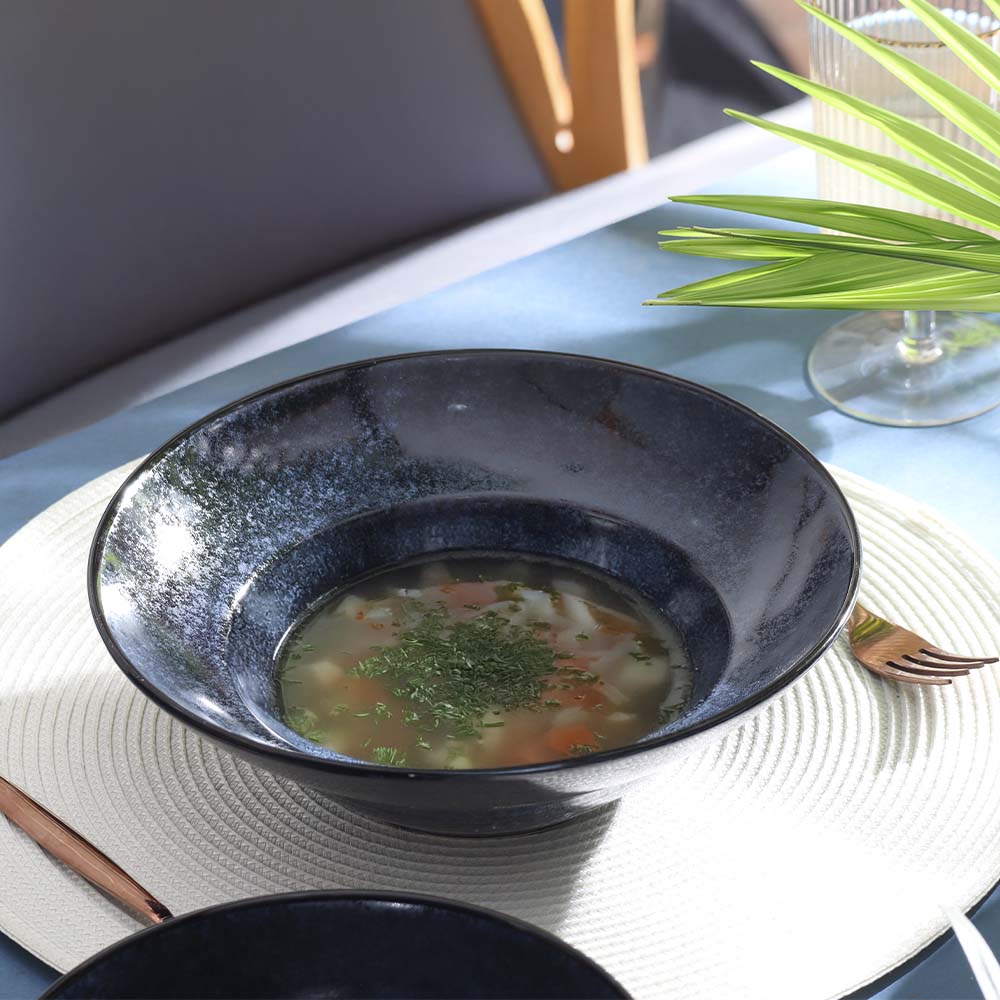 Bring a touch of sophistication to your dining experience with this beautifully crafted ceramic bowl. Designed with a deep form and wide rim, it is perfect for serving soups, salads, pasta, curries, or even desserts.