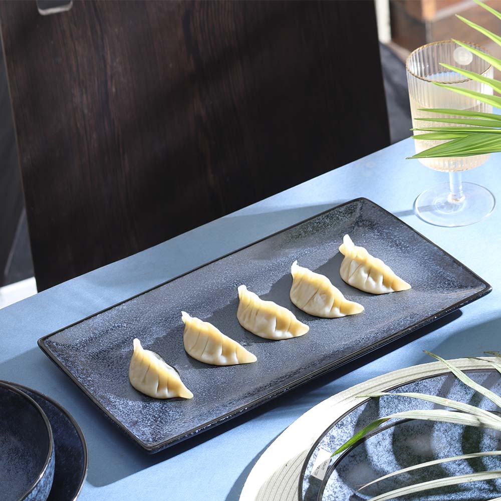 Designed for statement serving, this 13 x 7.5 inch ceramic rectangular platter offers generous space for main dishes, party spreads, or large family-style servings. Its elongated shape makes it a stunning centerpiece on any dining table.