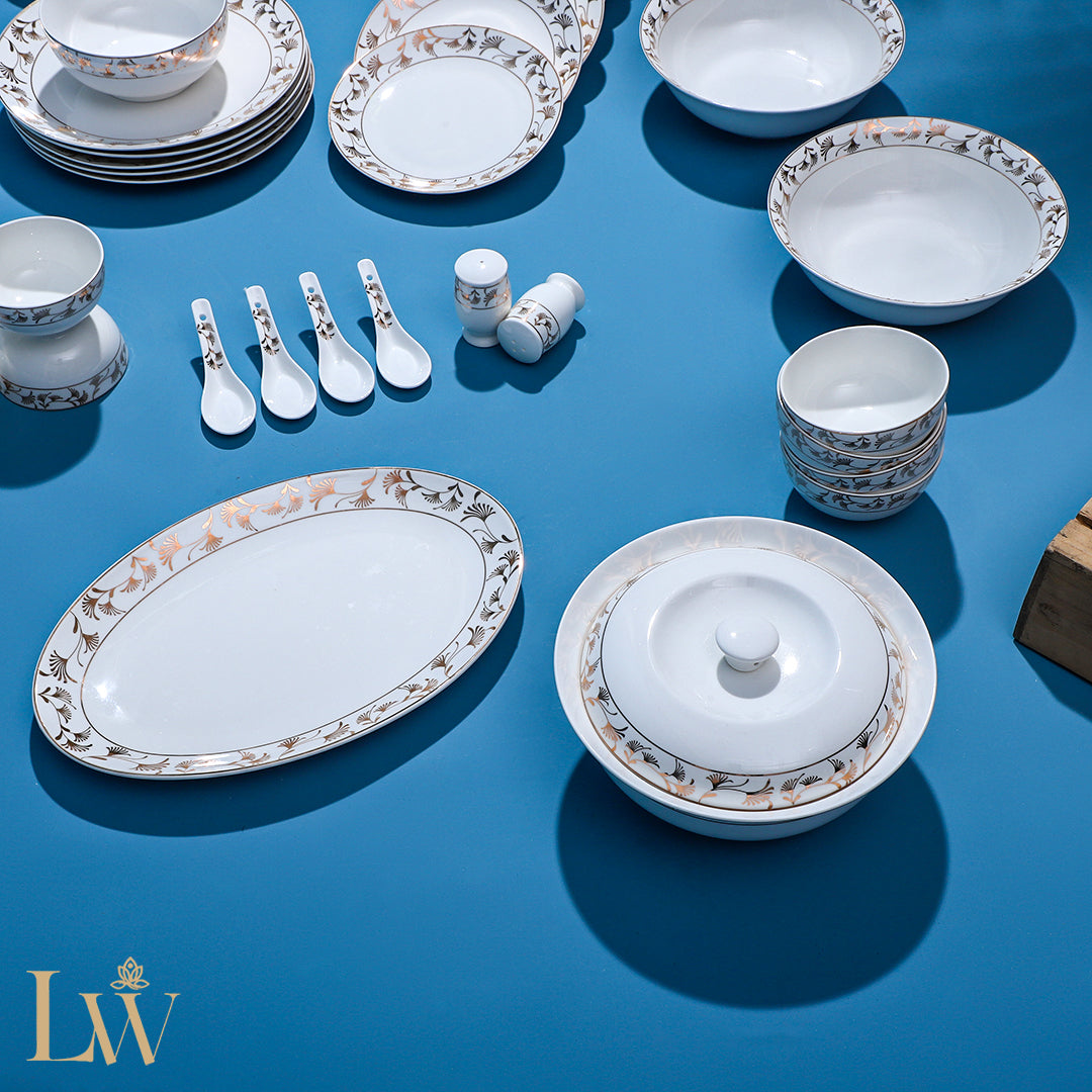 Each piece in the Regal Fern set carries a touch of sophistication — subtle textures, smooth finishes, and a design that speaks of warmth and harmony. Whether it’s a quiet family dinner or a lavish gathering, this dinnerware creates an atmosphere of understated luxury.