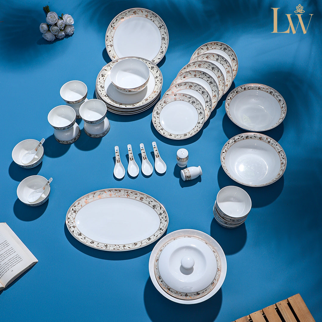 Elevate every dining occasion with Littlewood’s Serene Vine, a 38-piece dinner set that embodies timeless beauty and refined craftsmanship. Thoughtfully designed to blend elegance with everyday usability, this collection transforms every meal into a moment of grace and togetherness.
