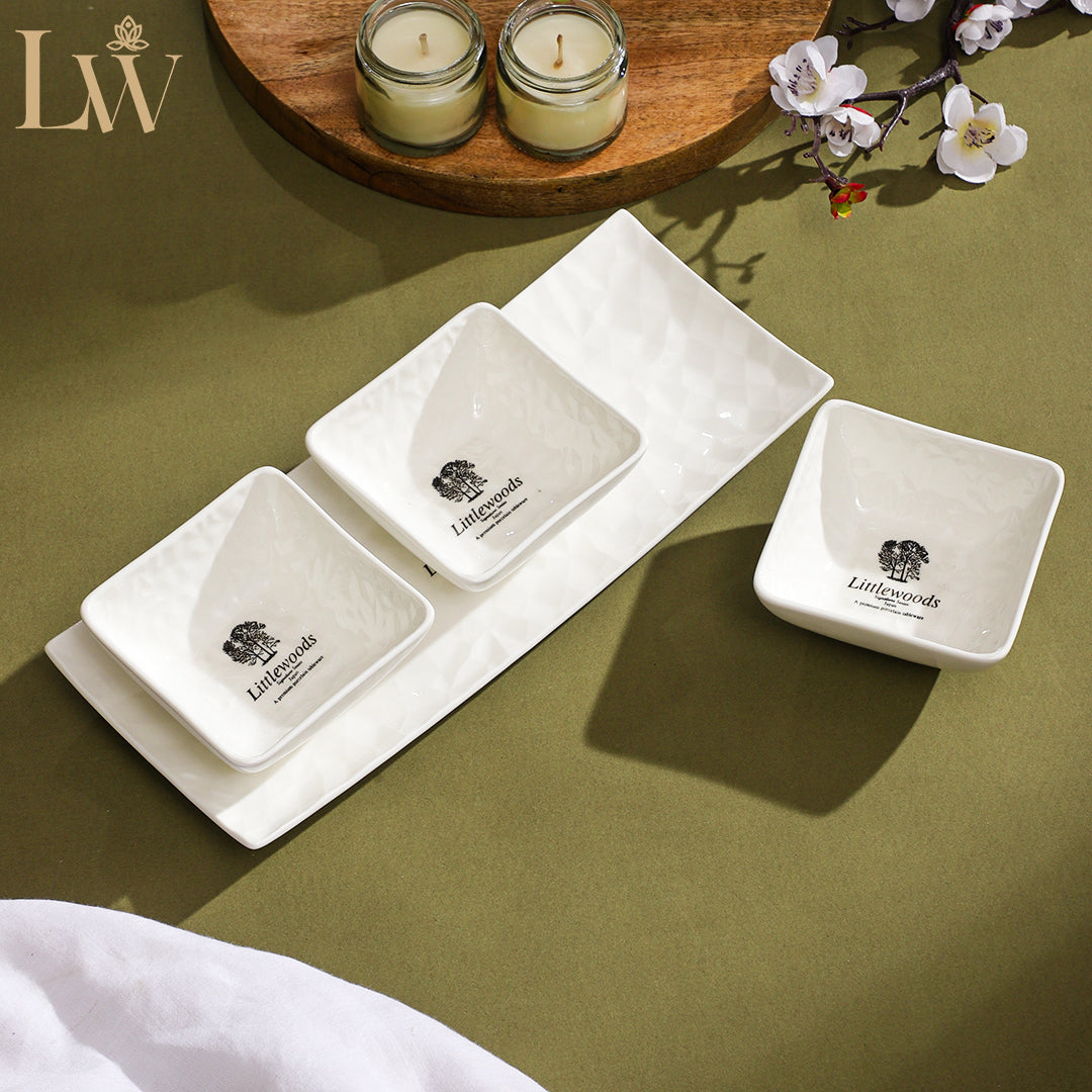 dd a touch of elegance to your table with our Triple White Serving Candy Can set. Thoughtfully designed in a modern square form with a subtle textured finish, this versatile set is perfect for every occasion. Whether you’re serving dry fruits, pickles, candies, dips, or condiments, it brings both functionality and sophistication to your spread.