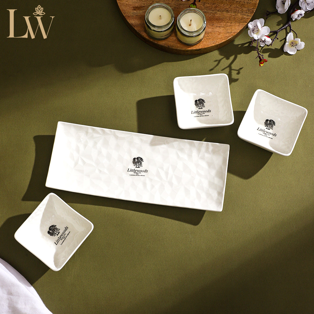 Crafted from premium-quality ceramic, the pieces are sturdy, easy to clean, and beautifully finished in a timeless white that complements any décor. Packaged in an elegant box, it also makes a wonderful gifting option for housewarmings, weddings, or festive occasions.